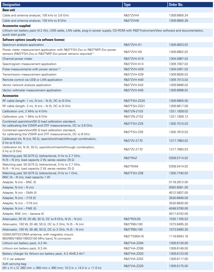 휴대용 벡터 네트워크 분석기 ZNH Series