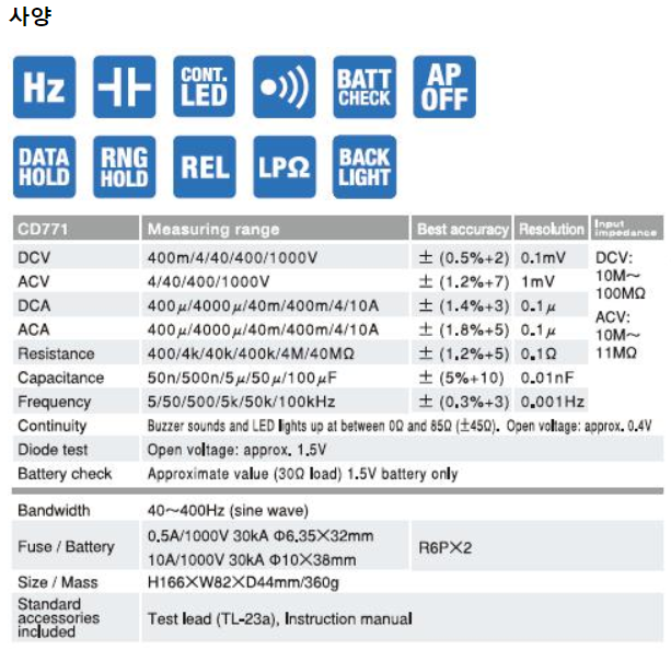 400/4k/140k/400k/4M/40MΩ 6레인지